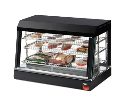 Hot Food Merchandiser, counter top, 26"W, self-service, illuminated, 3 adjustable shelves, variable heat w/humidity, front & rear sliding doors, s/s construction, 1.5 kw, 110v/60/1-ph, ETL, model# FMA7026
