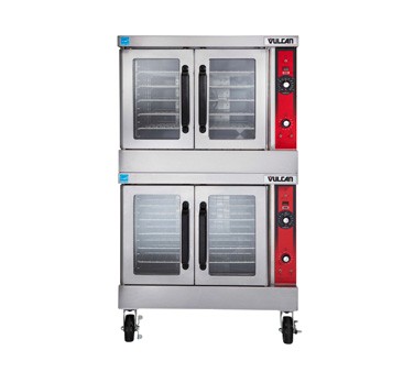 Convection Oven, electric, double-deck, standard depth, solid state controls, 60 minute timer, (5) nickel plated racks per oven, 8" high legs, stainless steel front, top and sides, stainless steel doors with windows, (2) 1/2 HP, 12.5 kW each section, NSF, cUL, UL