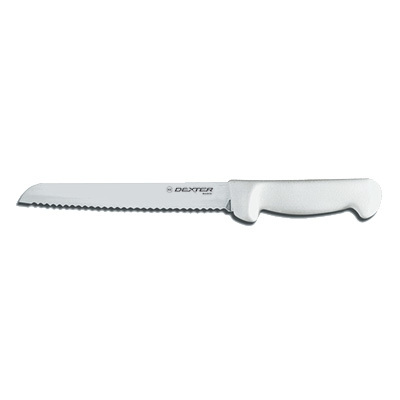 Basics® (31603) Bread Knife, 8", scalloped edge, stain-free, high-carbon steel, textured, polypropylene white handle, NSF Certified