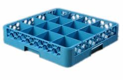 OptiClean Dishwasher Glass Rack, 16 compartment, full-size, 3-1/5" inside height, compartment size: 4-7/16" x 4-7/16", accommodates glasses up to 4-3/16", polypropylene, Carlisle blue, NSF