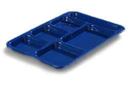 Compartment Tray, 14-3/8"L x 10"W, right-handed, rectangular, 6-compartments: (3) small upper, (2) large lower and (1) flatware, chemical resistant, dishwasher safe, polypropylene, blue, NSF