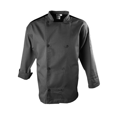 Chef Revival® Performance Series Jacket, double breasted, traditional collar, 8 chef logo buttons, long sleeve, sleeve pocket, mesh back, poly/cotton blend, pewter grey