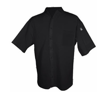 Cook Shirt, short sleeve, front snap buttons, chest pocket, poly/cotton, black, Chef Revival®
