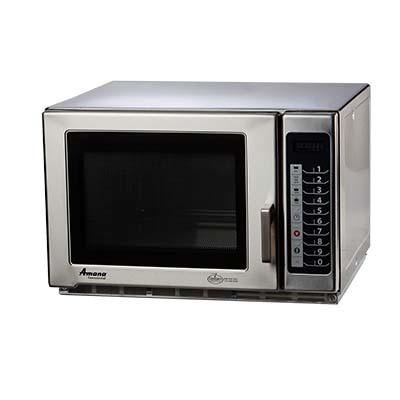 Amana® Commercial Microwave Oven, 1.2 cu. ft., 1200 watts, medium volume, 4-stage cooking, (5) power levels, (100) memory settings, 60-minute max cooking time, LED display, touch control, ADA-compliant Braille touch pads, audible end of cycle signal, side hinged door with tempered glass, lighted interior, sealed-in ceramic shelf, stainless steel exterior & interior, 120v/60/1-ph, 16.0 amps, 20 MCA, 2000 total watts, NEMA 5-20P, cETLus, ETL-Sanitation