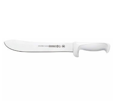 Butcher Knife, 10", high carbon/no stain blade, molded white polypropylene handle, treated with sanitized antimicrobial protection, NSF