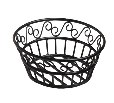 Bread Basket, 8" dia., black scroll design, wrought iron