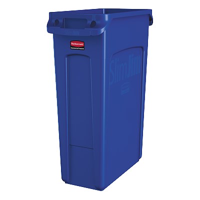 Slim Jim® Container, 23 gallon, 22"L x 11"W x 30"H, with venting channels, molded-in handles, general purpose waste, open type without lid, high-impact plastic construction, blue