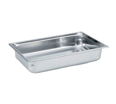 Super Pan 3® Full Size Food Pan, 4" deep, 100mm, 22 gauge 300 series stainless steel, top flange corners with concave indentation, anti-jamming, ramped sides, reverse form flattened edge, framing shoulder, interchangeable with SP3 plastic pan line, NSF, meets gastronorm (EN 631-1) standard, USA
