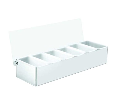Condiment Holder, 6 compartment holder, 1 pint, 18" x 6" x 3-1/2", stainless steel w/polycarbonate lid