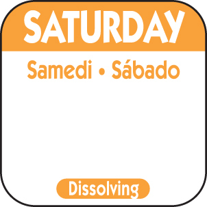 Dissolving Label: 1 x 1 Trilingual Dissolvable - Saturday. 1000 Labels per roll