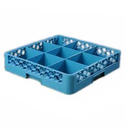 OptiClean Dishwasher Glass Rack, 9 compartment, full-size, 3-1/5" inside height, compartment size: 5-13/16" x 5-13/16", accommodates glasses up to 5-9/16", polypropylene, Carlisle blue, NSF