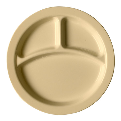 Camwear Plate, 9'' dia., 3-compartment, narrow rim, non-porous surface, smooth glossy finish, scratch resistant, textured surface, polycarbonate, beige, NSF