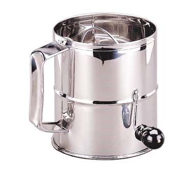 Flour Sifter, rotary, 3 lb. capacity, 6-1/8" dia., 6-1/8" high, 18/8 stainless steel