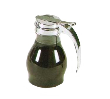 Dripcut® Syrup Server, 16 oz., clear polycarbonate jar with chrome plated top, 5-3/4"H (14.6cm), 3-1/2" (8.9cm) bottom diameter, 1-7/8" (4.8cm) jar opening, Made in USA