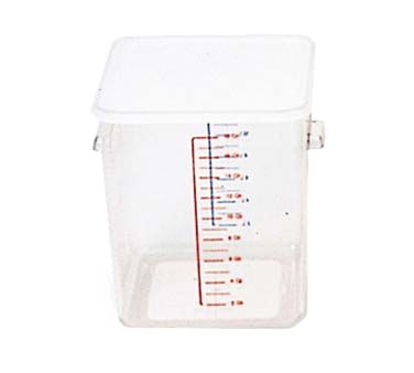Space Saving Container, square, 18 qt, 11-5/8"L x 10-1/2"W x 11-15/16"H, -40°F/-40°C to 212°F/100°C temp range, measurement graduations in red, smooth surface, break-resistant clear polycarbonate, dishwasher safe, clear, FDA, NSF