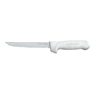 SANI-SAFE® 6" Narrow Boning Knife, in Perfect Cutlery Packaging, stain-free, high-carbon steel blade, textured, white polypropylene handle, NSF Certified