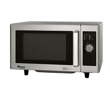 Amana® Commercial Microwave Oven, 1000 watts, low volume, interlock safety switch, 6-minute light up dial timer, audible end of cycle signal, 1 power level, side hinged door with glass window, stainless steel wrap exterior & interior, 3-yr limited warranty, 5 ft cord, 120v/60/1-ph, 9.6 amps, 15 MCA, NEMA 5-15P, UL, ETL