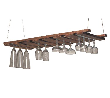 Glass Rack, 14" x 35", walnut, suspended by chains, accomodates up to a 2-7/8" diameter wine glass foot