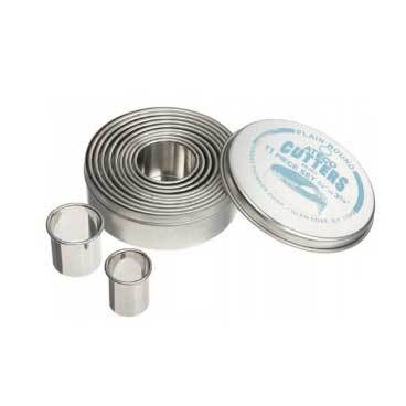 Ateco Biscuit Cutter Set, round, includes: (11) cutters from 7/8" to 3" dia., all are 1-1/8" high, packed in a metal canister, tin plated material