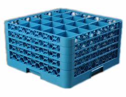 OptiClean Dishwasher Glass Rack, 25 compartment w/4 extender, full-size, 9-1/2" inside height, compartment size: 3-1/2" x 3-1/2", accommodates glasses up to 3-1/4", polypropylene, Carlisle blue, NSF