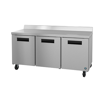 Steelheart Series Worktop Refrigerator, reach-in, three-section, 72"W, 21.25 cu. ft., self-contained rear mounted refrigeration system, (3) solid hinged doors, (3) adjustable shelves, stainless steel interior, stainless steel exterior front, sides & top, (4) 6" stem casters (2 with brakes), R290 Hydrocarbon refrigerant, 1/5 HP, NEMA 5-15P, cETLus, ETL-Sanitation, ENERGY STAR®