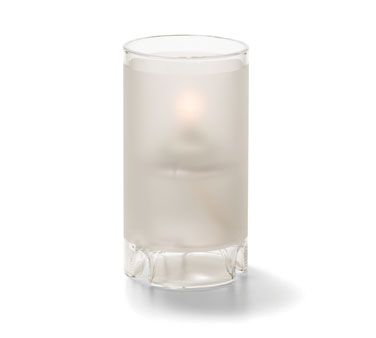 Miniature Glass Cylinder Lamp, 4-3/8" H x 2-3/8" dia., accommodates Hollowick's HD17 or HD26 disposable fuel cell, one-piece, satin crystal