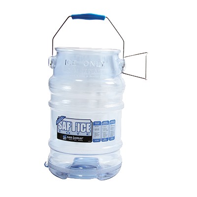 Saf-T-Ice® Tote, 6 gallon, polycarbonate, rubber handle, with tri-grip feature, includes Saf-T-Ice® HACCP hanger for elevation to waist level, NSF