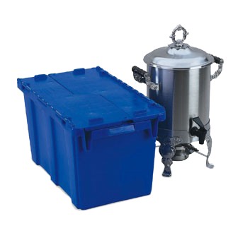 Tote N Store Small Chafer Box, DARK BLUE, holds most coffee urns and soup chafers, polyethylene with sure-grip molded-in handles, inside top dimensions 20-1/8"x11-3/8"x12-3/8", inside bottom dimensions 18-7/8"x10-1/8", USA made
