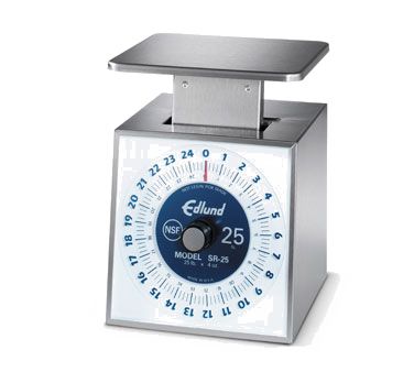 Scale, Portion, Dial Type, top loading counter model, rotating dial, vertical face, 25 lbs x 4 oz graduation, stainless steel construction, NSF certified