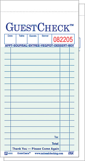 National Checking Co. Duplicate paper, interleaving carbon green GUESTCHECK™ (box of 50)