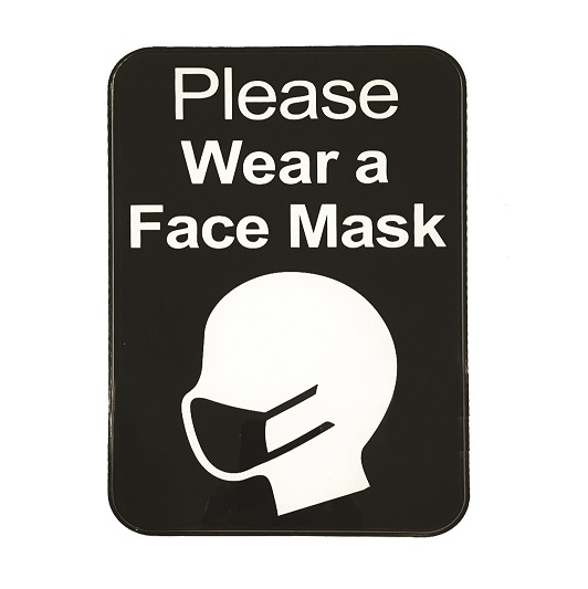 Sign, 9" x 6", "Please Wear a Face Mask", self adhesive backing, plastic, black