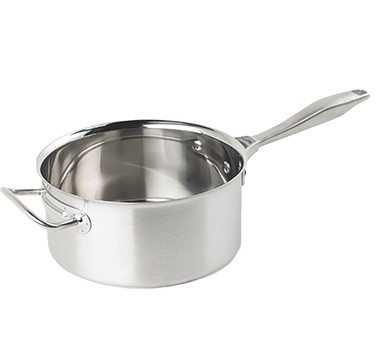 Intrigue® Sauce Pan, 4-1/4 qt.(4.0L), 18-8 s/s body, w/1/4" Alum -S/S Clad Bottom, for gas, electric, induction & ceramic cooktops, combination satin/mirror finish, welded hollow handle, inside diameter 8.7", inside depth 4.2", Body Thick .047", Lifetime Warranty, Imported, NSF, Jacobs Pride Collection