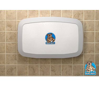 Baby Changing Station, horizontal, polypropylene w/Microban® antimicrobial protection, unibody steel chasis supports 200 lbs, steel on steel hinges, gas spring mechanism, dual liner cavity w/lock, nylon safety straps, bag hooks, white granite