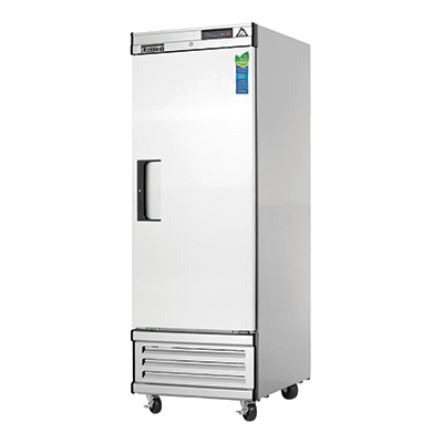 Reach-In Freezer, one-section, 21.0 cu. ft. capacity, bottom mount self-contained refrigeration, (1) full-height hinged solid door (locking), (3) epoxy coated wire shelves, height adjustable clips, digital controls with LED display, auto defrost, LED interior lighting, stainless steel interior, stainless steel front & sides, galvanized steel top, bottom & rear, leg stabilizers, R-404A refrigerant, 1/2 HP, 115v/60/1-ph, 7.59 amps, cord, NEMA 5-15P, NSF, cETLus, ETL-Sanitation
