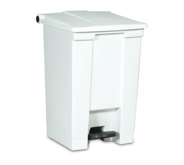 Step-On Container, 12 gallon, 16-1/4" x 15-3/4"W x 23-5/8"H, hands free, heavy-duty pedal, tight fitting overlapping lid, puncture resistant, plastic construction, white, FM & CSFM approved, OSHA, Made in USA
