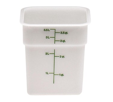 CamSquare® Food Container, 4 qt, 7-1/4 x 7-1/4 x 7-3/8, natural white, green graduation, polyethylene, dishwasher safe, resists stains & odors, NSF listed