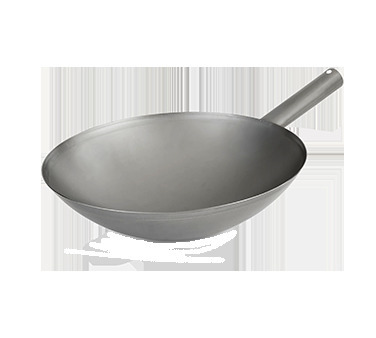 Induction Wok Pan, 14" dia. x 3-7/8"H, 18 gauge carbon steel wok pan with tubular handle for use with Vollrath 695831 induction wok range. USA made