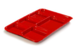 Compartment Tray, 14-3/8"L x 10"W, right-handed, rectangular, 6-compartments: (3) small upper, (2) large lower and (1) flatware, chemical resistant, dishwasher safe, polypropylene, red, NSF