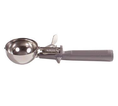 Deluxe Disher, 4 oz., size 8, 2-7/8" dia., round, one piece handle reinforced with stainless steel rod, easy release, 18/8 stainless steel, gray, NSF