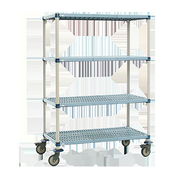 MetroMax Q™ Mobile Shelving Unit, 48"W x 24"D x 67-5/16"H, (4) open grid polymer shelves with Microban® antimicrobial protection, (4) posts, (4) swivel polyurethane casters (2 braked), epoxy coat steel frame, KD, NSF