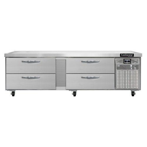 Refrigerator Griddle Stand, two-section, (4) drawers - four drawers accommodates (2) 12" x 20" x 6", stainless steel top with drip guard marine edge, stainless steel exterior & interior, electronic control with digital display, hi-low alarm, high/low temperature alarm, self-contained refrigeration, R290 Hydrocarbon Refrigerant, 1/4 HP, 10' cord, cETLus, NSF, Made in USA
