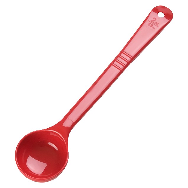 Measure Misers® Portion Spoon, 2 oz., solid, long handle with thumb grip, flat bottom, resting notch, dry heat-resistant to 270°F, break-resistant, dishwasher safe, acetal, red, NSF, BPA-Free