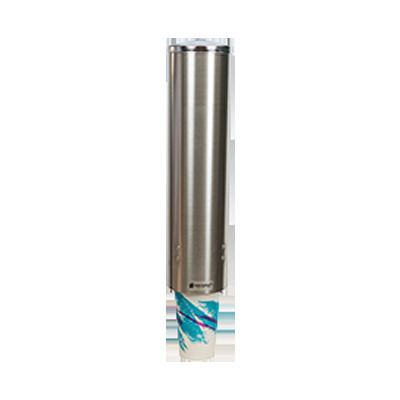 Water Cup Dispenser, large, pull-type, top loading, 16"L tube, fits 8 to 12 oz. cone cups or 12 to 24 oz. flat bottom cups with rim diameter of 3-1/4" to 3-7/8", 26 gauge stainless steel