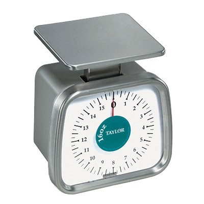 Portion Control Scale, compact, analog, 16 oz. x 1/4 oz. capacity, angled dial, top loading counter model, 4-1/2" x 4" stainless steel platform, bold graphics, internal stop mechanism, plastic anti-microbial housing, NSF
