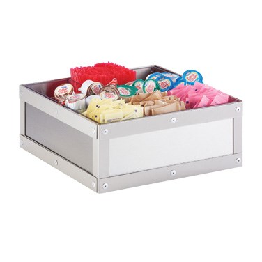 Urban Stainless Steel Condiment Organizer 12"W x 12"D x 4"H, multi-section, stainless steel body with clear acrylic insert, 9 sections