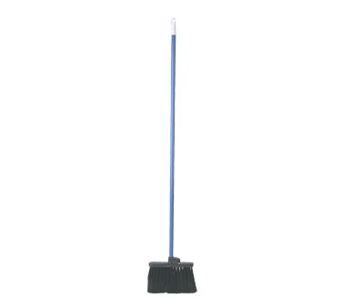 Duo-Sweep® Light Industrial Broom, 48"L blue metal threaded handle, 11" wide head, unflagged filament, (2) handle holes: angled and upright, stiff synthetic bristles, black