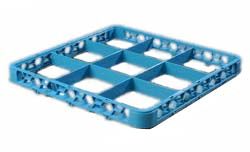 OptiClean Divided Extender, 9 compartment, full-size, compartment size: 5-15/16" x 5-15/16", accommodates glasses up to 5-7/8", polypropylene, Carlisle blue