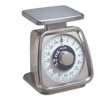 Portion Control Scale, analog, 32 oz. x 1/4 oz./900 g x 5 g capacity, angled rotating dial, top loading counter model, bold graphics, shatterproof lens, removable platform, stainless steel construction, NSF