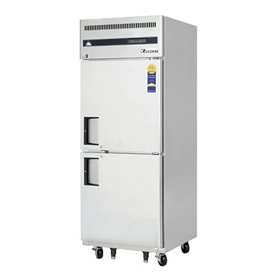 Reach-In Refrigerator, one-section, two half-doors, 23 cu. ft. capacity, (3) shelves, top mounted self-contained refrigeration, digital control system, adjustable self-closing & field reversible doors (from 2013 model), door locks, stainless steel interior & exterior, (2) adjustable stainless steel clad ABS legs, LED interior lighting, 1/4+ HP, 115v/60/1-ph, 4.0 amps, NEMA 5-15P, NSF, ETL-Sanitation