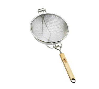 Strainer, 10-1/4" dia., reinforced, tinned, double medium mesh, flat wooden handle